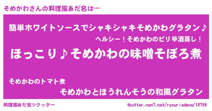 | 男性向けラノベタイトル風あだ名 | 『そめかわの憂鬱』 |