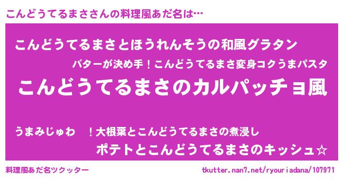 | 意味不明あだ名 | 『住所不定無職こんどうてるまさ(71歳)』 |
