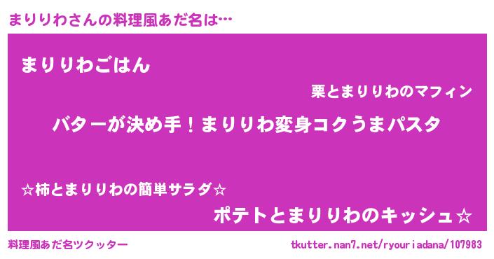 | ヘコむあだ名 | 『まりっぺ』『豆乳』『まりにー』 |
