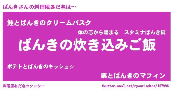 | ヘコむあだ名 | 『なまこ酢』『ばん太郎』『ばんもー』 |