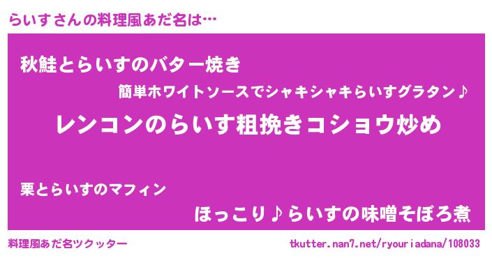 | 意味不明あだ名 | 『自称らいす』『永久保存らいす』 |