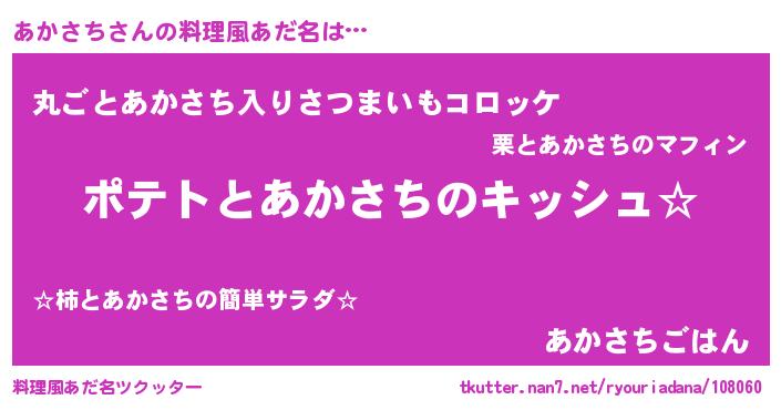| 女子向けラノベタイトル風あだ名 | 『あかさちの卵を拾いまして』 |