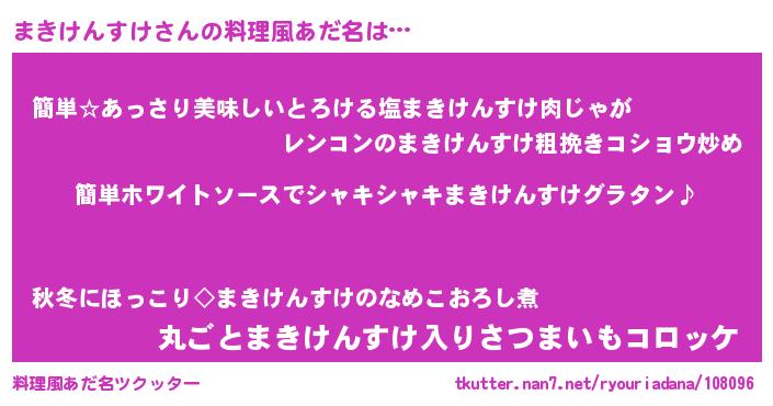 | 男性向けラノベタイトル風あだ名 | 『まきけんすけの嫁は女の子じゃないと思った?』 |