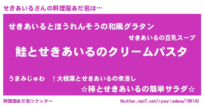 | ヒーロー風カッコイイあだ名 | 『天空の使者せきあいる』『魔戒騎士セキ』 |