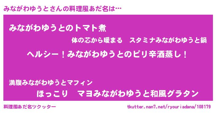 | 男性向けラノベタイトル風あだ名 | 『Re:みながわゆうとから始める異世界生活』 |