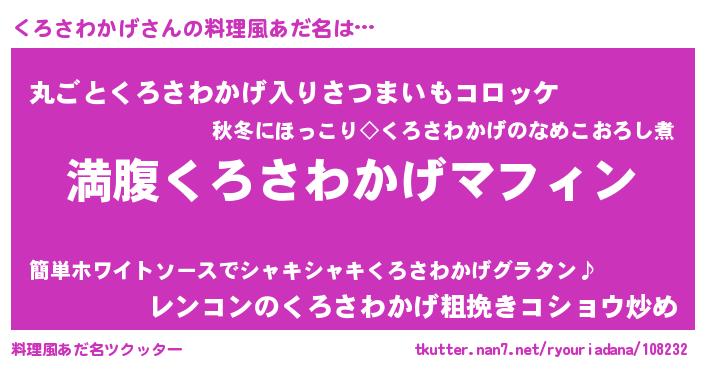 | ヘコむあだ名 | 『くろさわかげ(遠い目)』『くろぷりん』 |