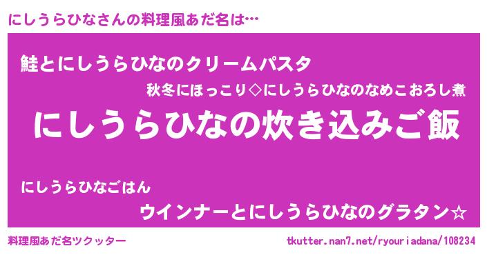 | 男性向けラノベタイトル風あだ名 | 『うちのにしうらひなが世界を掌握している!』 |