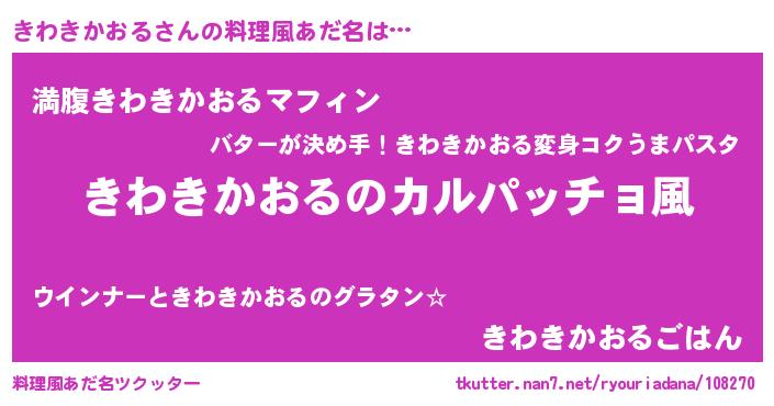 | 女子向けラノベタイトル風あだ名 | 『きわきかおるが死なない童話 林檎のきわきかおるの診療簿』 |