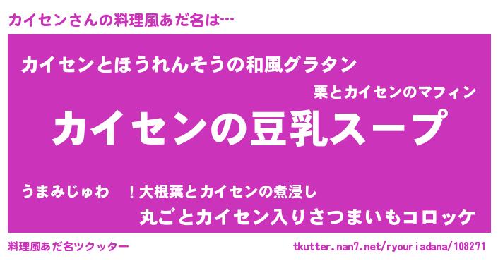 | ヘコむあだ名 | 『カイっぺ』『豆乳』『カイにゅー』 |