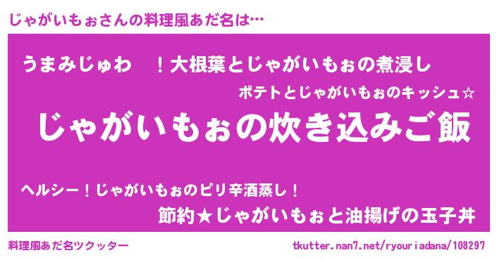 | 胡散臭い通販商品みたいなあだ名 | 『運命の人と巡り会える高級そうな皿…その名も「じゃがいもぉ」』 |