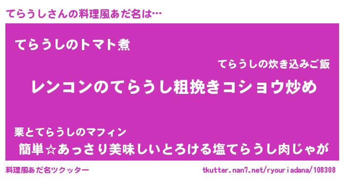 | 意味不明あだ名 | 『自称てらうし』『永久保存てらうし』 |