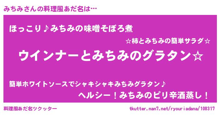 | 意味不明あだ名 | 『みちみフォーエバー』『ペロリンみちみ』 |