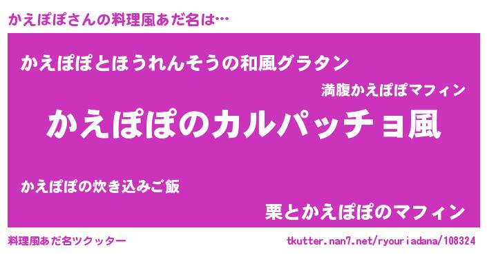 | 意味不明あだ名 | 『住所不定無職かえぽぽ(50歳)』 |