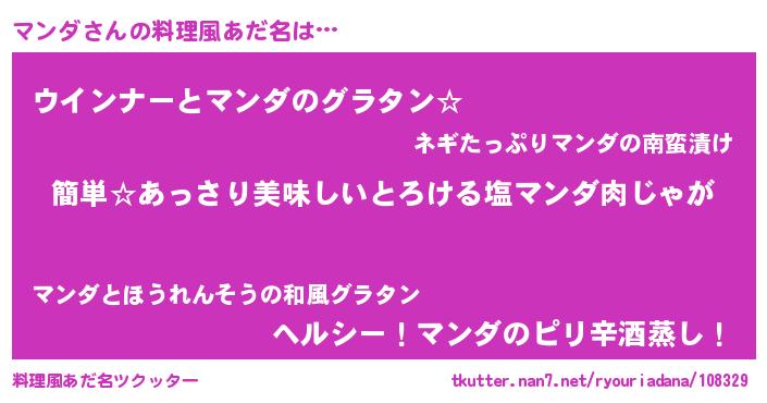 | ファンタジー風あだ名 | 『マンディッシュ』『エターナルマンダー』 |