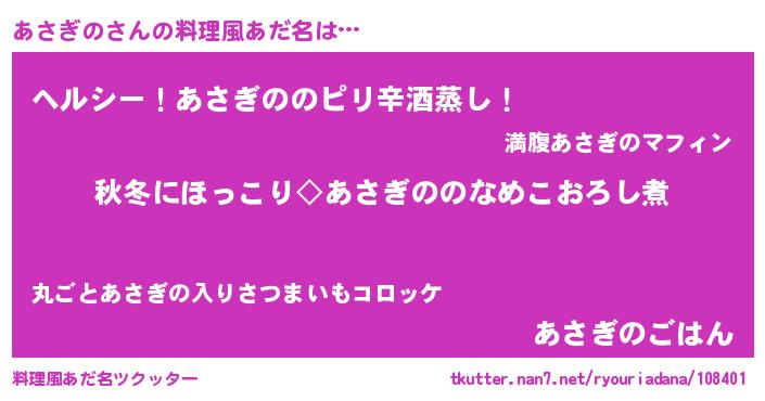 | ヘコむあだ名 | 『あさぎの(笑)』『あさにゅー』 |