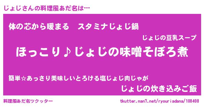 | 男性向けラノベタイトル風あだ名 | 『じょじの憂鬱』 |
