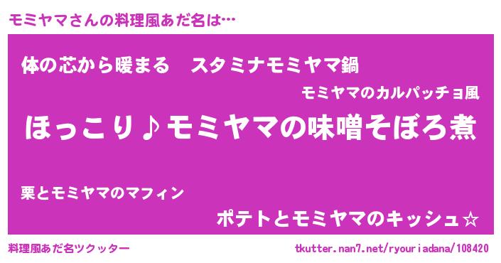 | ヒーロー風カッコイイあだ名 | 『スーパーモミヤマ』『幻影騎士モミ』 |