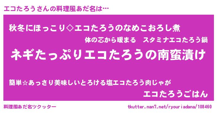 | 男性向けラノベタイトル風あだ名 | 『エコタロウアートオンライン』 |