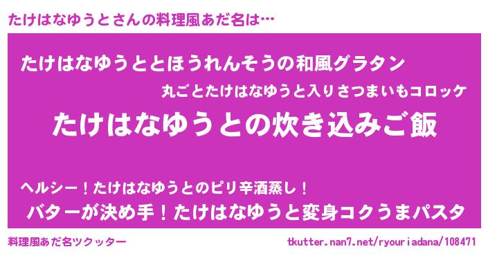 | ヘコむあだ名 | 『たけはなゆうと(笑)』『たけにー』 |