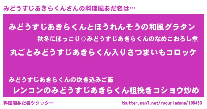 | 男性向けラノベタイトル風あだ名 | 『この素晴らしい世界にみどうすじあきらくんを!』 |