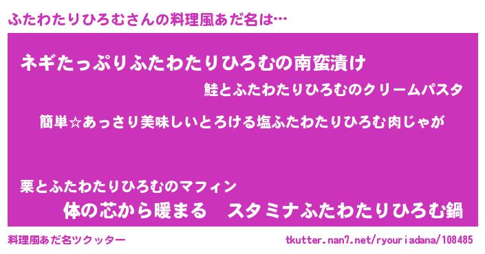 | ヘコむあだ名 | 『ふたわたりひろむ(笑)』『ふたふぇ~』 |
