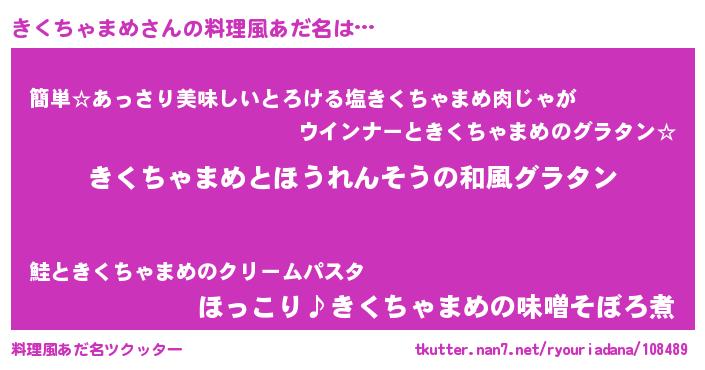 | 女子向けラノベタイトル風あだ名 | 『きくちゃまめの玉の輿計画!』 |