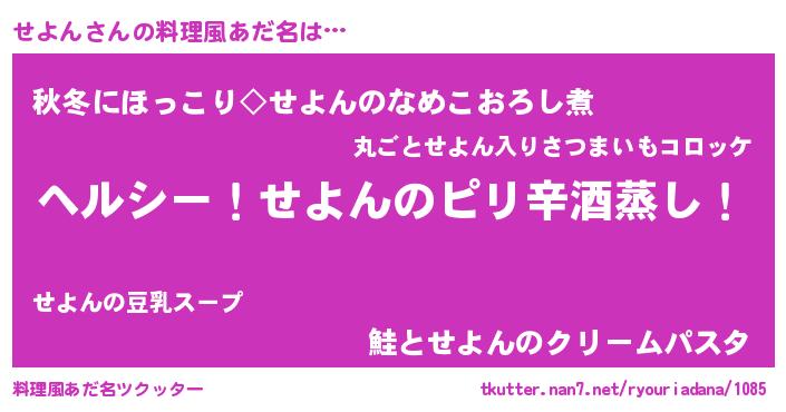 | 男性向けラノベタイトル風あだ名 | 『Re:せよんから始める異世界生活』 |