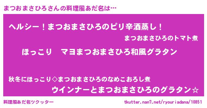| 男性向けラノベタイトル風あだ名 | 『この素晴らしい世界にまつおまさひろを!』 |