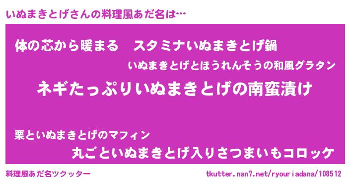 | 胡散臭い通販商品みたいなあだ名 | 『億万長者になれるブレスレット…その名も「いぬまきとげ」』 |