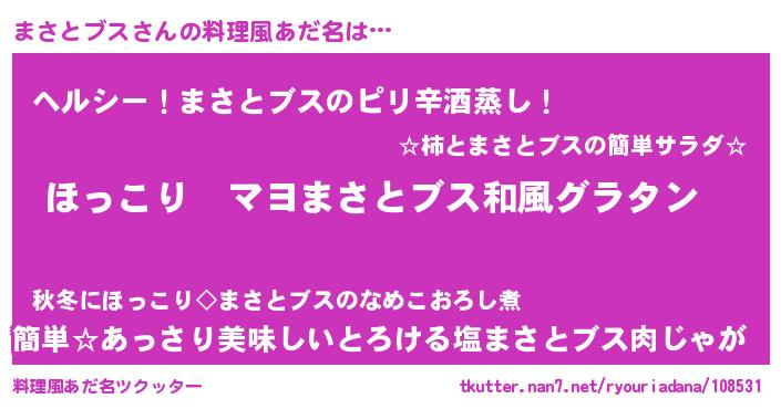 | 男性向けラノベタイトル風あだ名 | 『この素晴らしい世界にまさとブスを!』 |