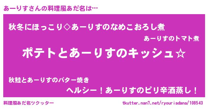 | 女子向けラノベタイトル風あだ名 | 『あーりすの卵を拾いまして』 |