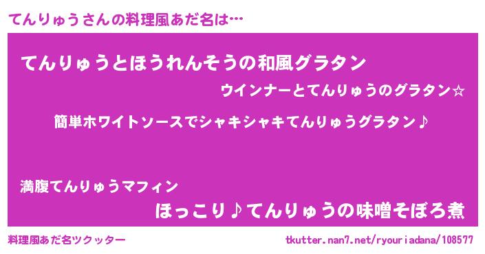 | 男性向けラノベタイトル風あだ名 | 『てんりゅうの嫁は女の子じゃないと思った?』 |