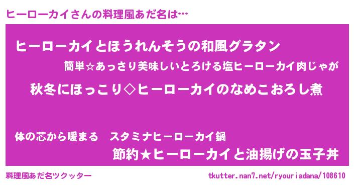 | ヘコむあだ名 | 『ヒーにー』『ヒーローカイ(笑)』 |