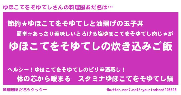 | 胡散臭い通販商品みたいなあだ名 | 『億万長者になれるブレスレット…その名も「ゆほこてをそゆてし」』 |