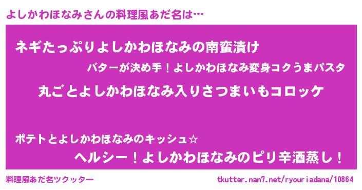 | 女子向けラノベタイトル風あだ名 | 『乙女ゲームの破滅フラグしかない悪役よしかわほなみに転生してしまった…』 |