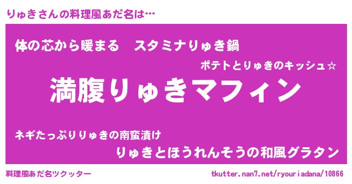 | 女子向けラノベタイトル風あだ名 | 『異世界で失敗しない100のりゅき』 |