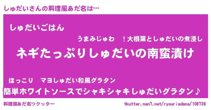 | ヘコむあだ名 | 『しゅもー』『しゅを』『酢こんぶ』 |