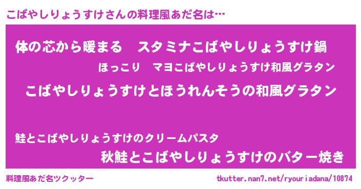 | 胡散臭い通販商品みたいなあだ名 | 『運命の人と巡り会える高級そうな皿…その名も「こばやしりょうすけ」』 |