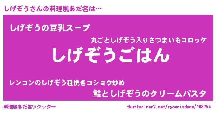 | 男性向けラノベタイトル風あだ名 | 『シゲゾウスレイヤー』 |