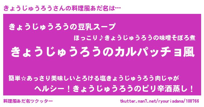 | 意味不明あだ名 | 『住所不定無職きょうじゅうろう(59歳)』 |
