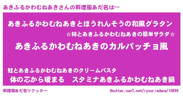 | 意味不明あだ名 | 『住所不定無職あきふるかわむねあき(77歳)』 |