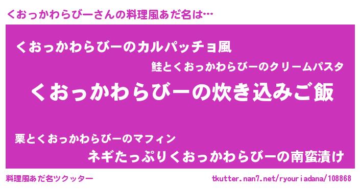 | 胡散臭い通販商品みたいなあだ名 | 『世界中を虜にした世界で10本だけ現存している希少なブランデー…その名も「くおっかわらびー」』 |