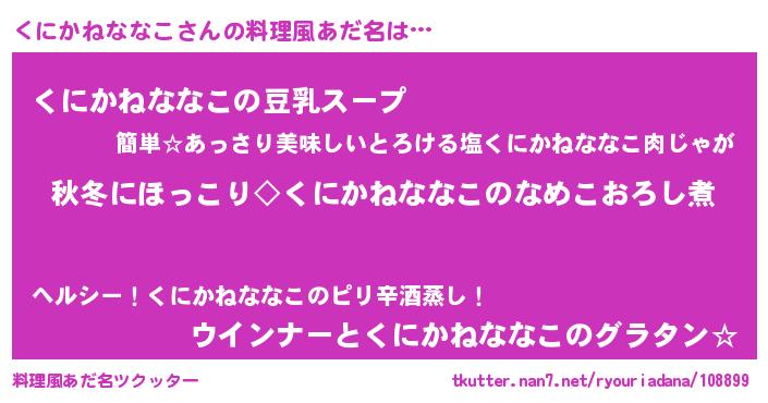 | ポケモン風あだ名 | 『クニゴンZ』『ヒクニカネナナコ』 |