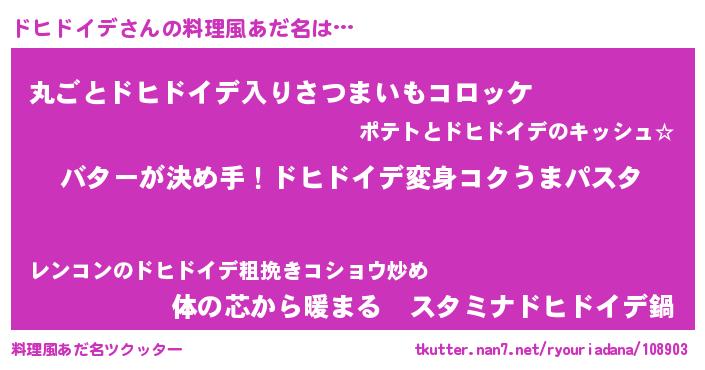 | ヒーロー風カッコイイあだ名 | 『慈愛の使者ドヒドイデ』『仮面ドヒダー』 |
