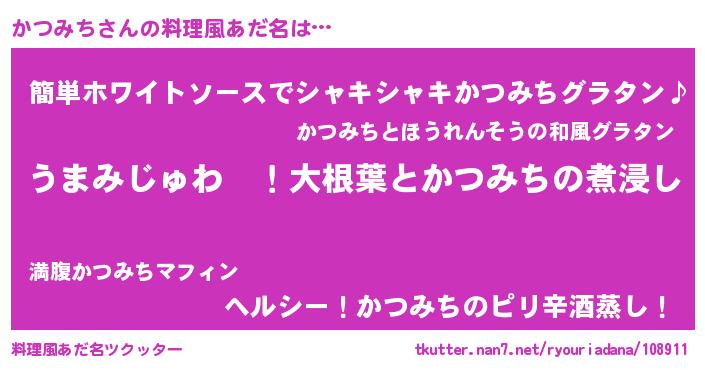 | 胡散臭い通販商品みたいなあだ名 | 『運命の人と巡り会える高級そうな皿…その名も「かつみち」』 |