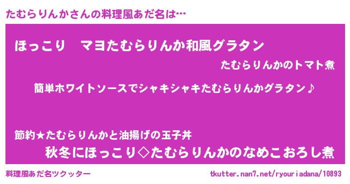 | 胡散臭い通販商品みたいなあだ名 | 『全米が絶賛したサプリメント…その名も「たむらりんか」』 |