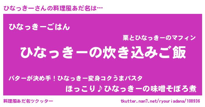 | ヒーロー風カッコイイあだ名 | 『スーパーヒナッキー』『仮面ヒナダー』 |