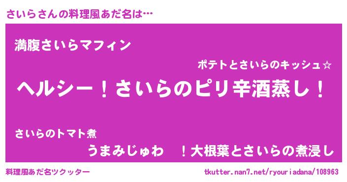| 欧米人風あだ名 | 『ケンブリッジさいら』『ウサインさいら』 |