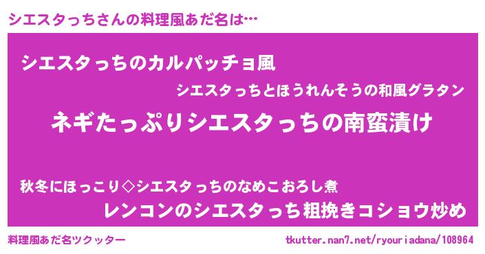 | 胡散臭い通販商品みたいなあだ名 | 『億万長者になれる水晶球…その名も「シエスタっち」』 |