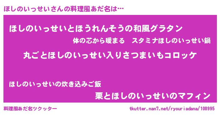 | ヒーロー風カッコイイあだ名 | 『仮面ホシダー』『幻影騎士ホシ』 |